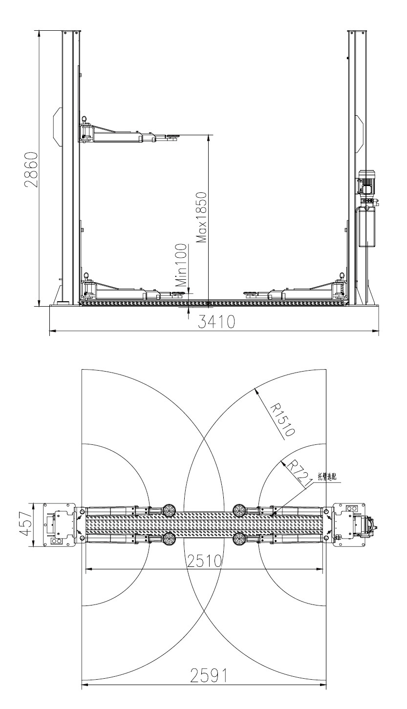 6) L'altezza minima della gru è 110mm ed è applicabile a manutenzione dell'automobile di prima scelta.