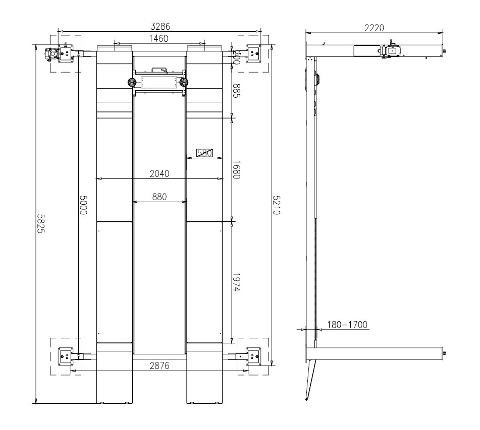 7) La distanza interna della piattaforma elevatrice di adeguamento per i veicoli differenti con differenti passi.
