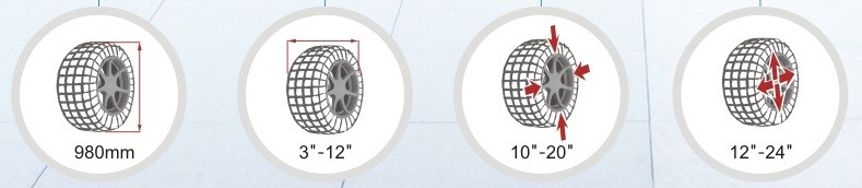 | Larghezza della ruota | 3' - 12' | 3' - 12' | 3' - 12' | 3' - 15' | 3' - 15' |