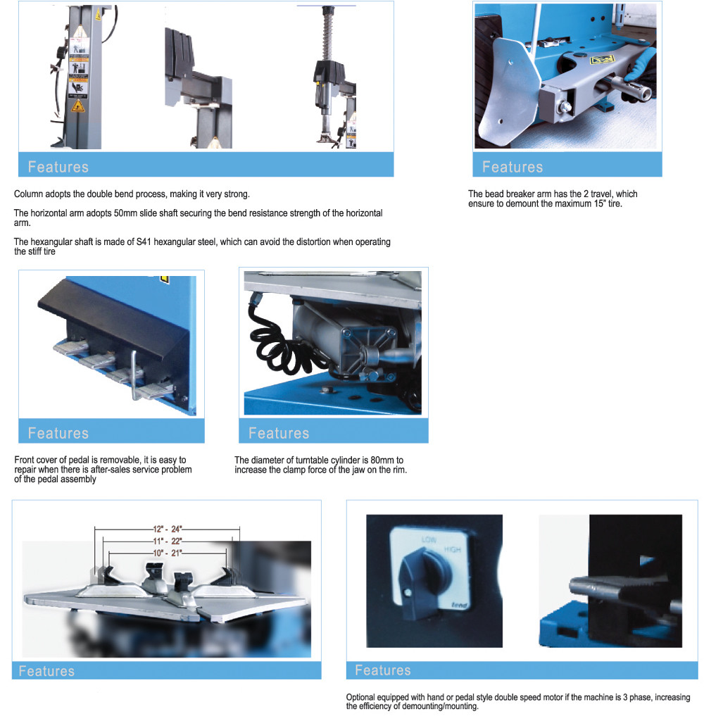 8) Facoltativo fornito di mano o di motore di doppia velocità di stile del pedale se la macchina è fase 3, aumentante l'efficienza di smontaggio del /mounting.