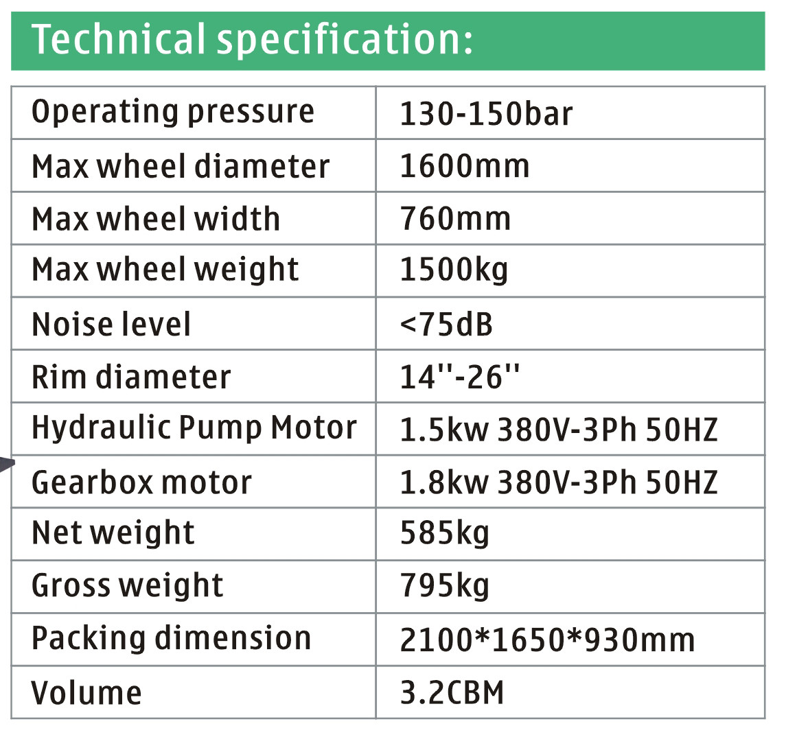 | Peso massimo della ruota | 1500kg | 1800kg |